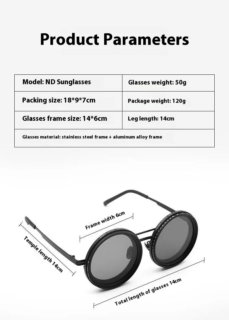 Experience a new level of visual clarity with the Rivaura™ Adjustable ND9 Steampunk Sunglasses, where modern engineering meets timeless design. Created for those who appreciate both style and function, these sunglasses feature a rotating neutral-density lens that allows you to control brightness with effortless precision.
